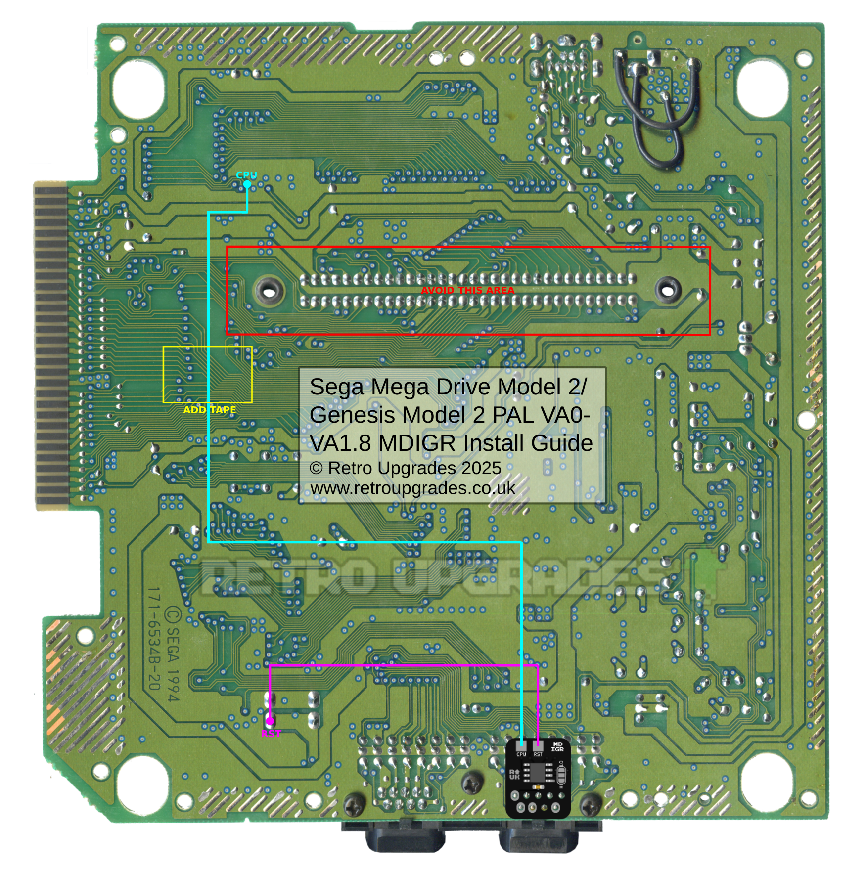 The full installation guide covers a PAL VA1.8 motherboard, but can be used for all MD1/Genesis 2 board revisions.