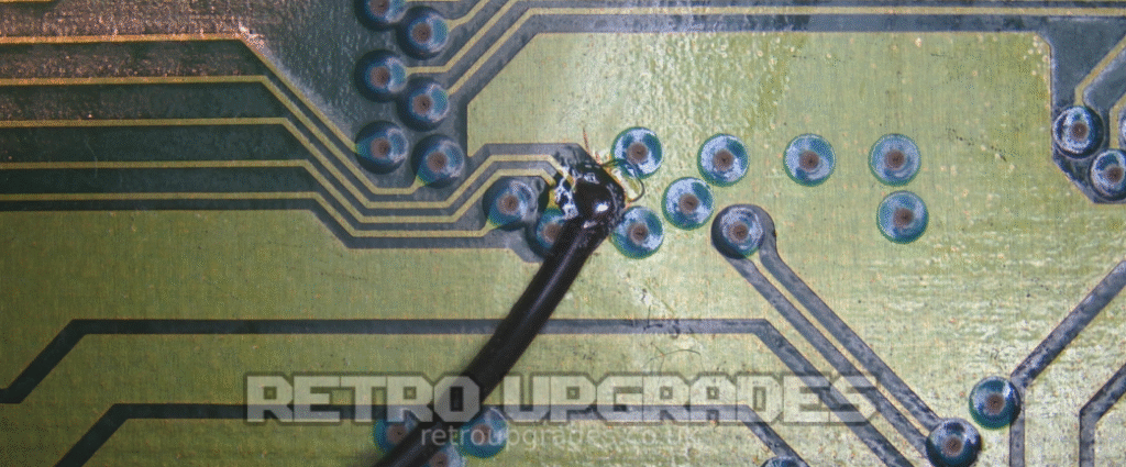 Connect the ‘CPU’ pad on the MDIGR board to the bottom side ‘CPU pin 19’ on the console main board.