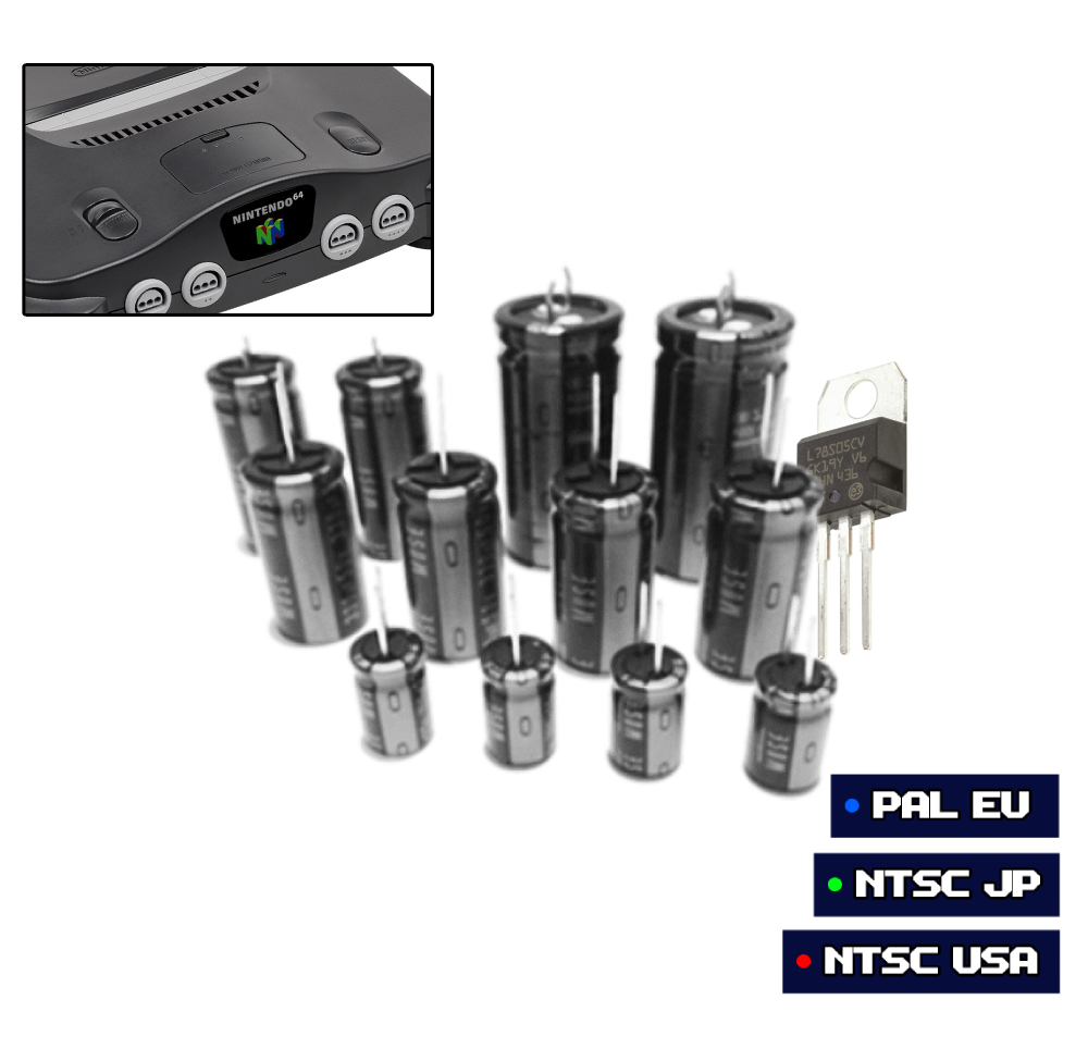 Service your USA, UK/EU or Japanese Nintendo 64 console using our latest cap kit! This kit covers all N64 revisions, both PAL and NTSC.